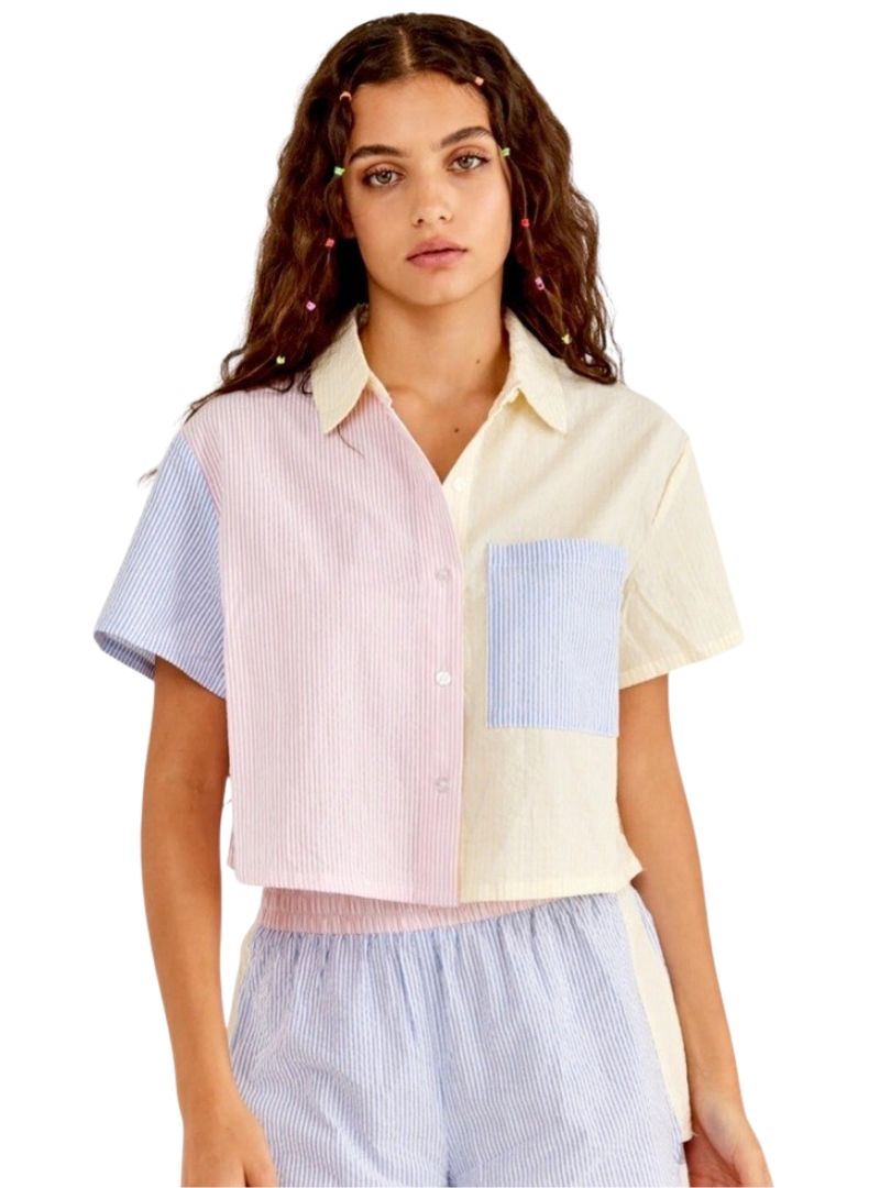 Forever 21 Ladies Striped Blouse - Yellow/Pink/Blue