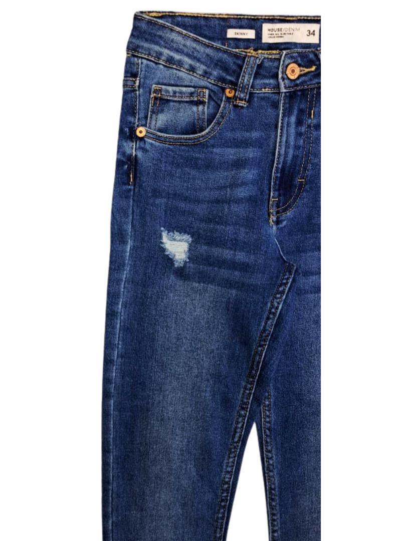 House Denim Ladies Mid Waist Skinny Jean - Blue