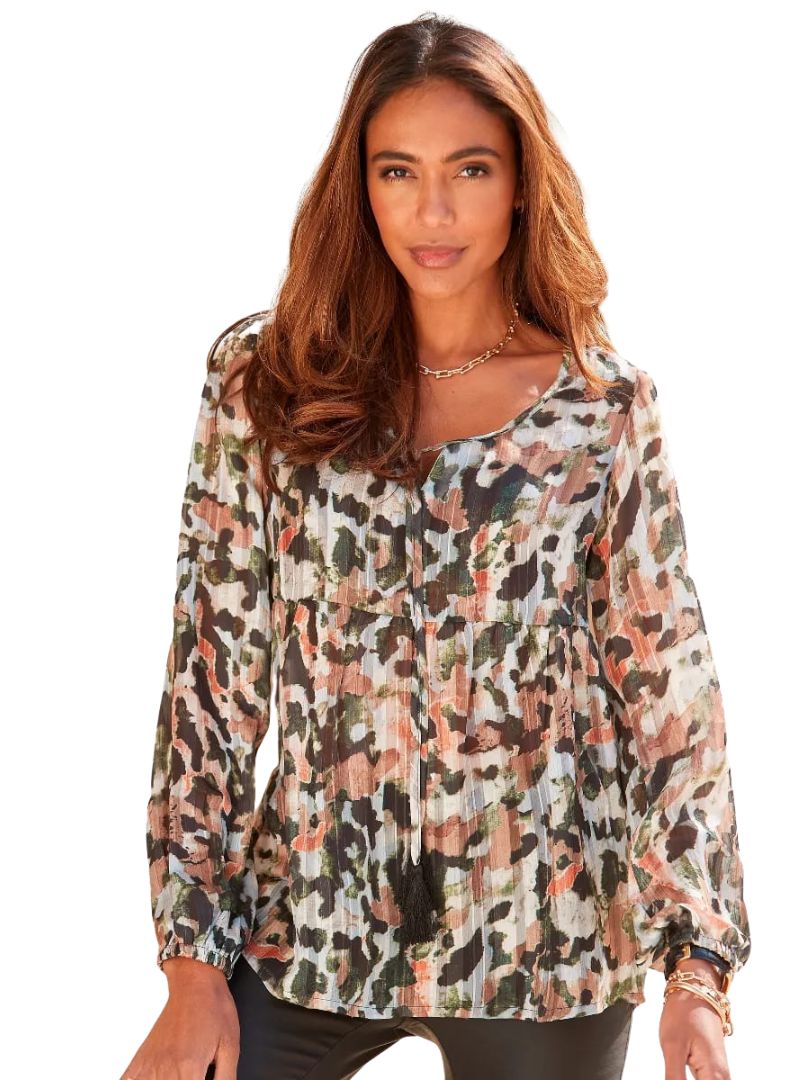 Lascana Ladies Detailed Blouse - Brown/Black/Green