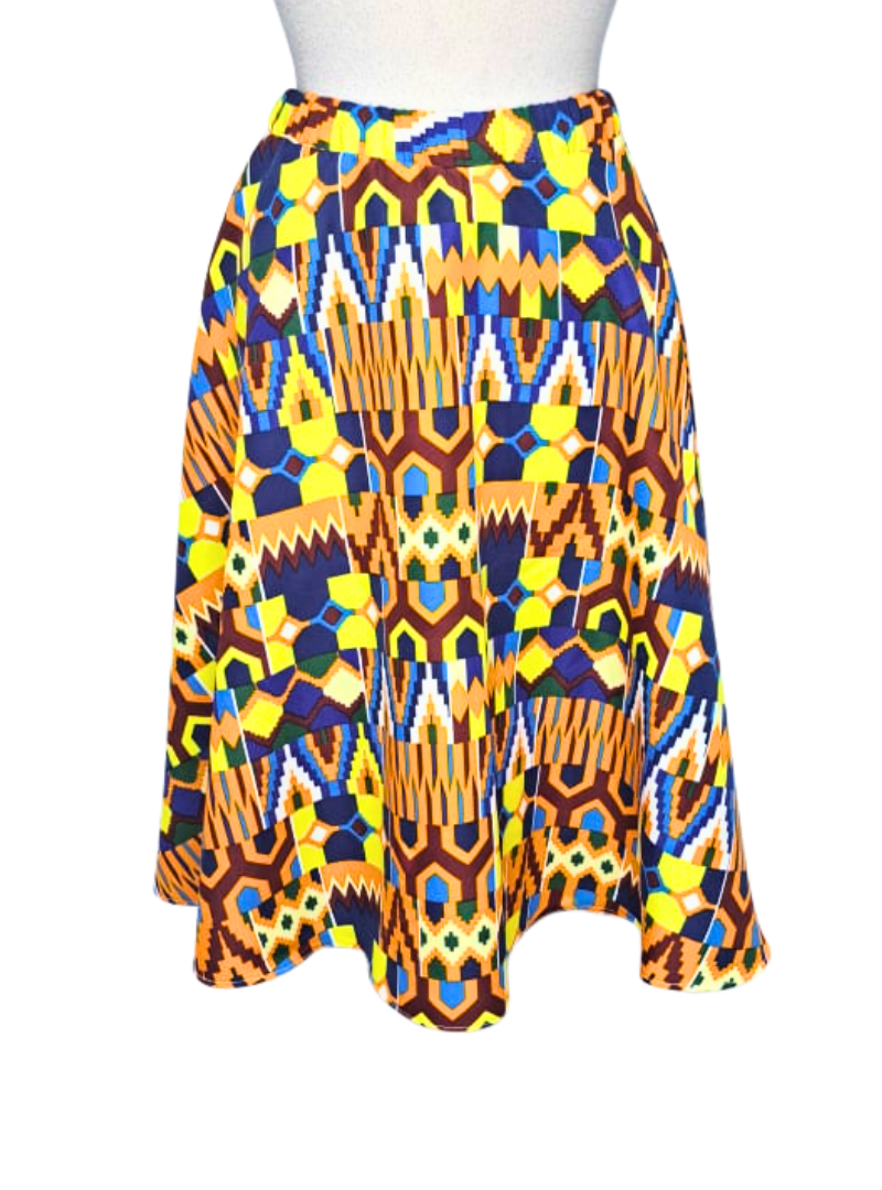 Twirl into your day with the Olivy Printed Circle Skirt in vibrant multi-coloured African print. This knee-length beauty features a comfortable elastic waist that moves with you, making it perfect for everything from casual outings to weekend adventures. The bold, eye-catching print brings instant personality to any outfit, while the flattering circle cut ensures effortless style and comfort all day long.