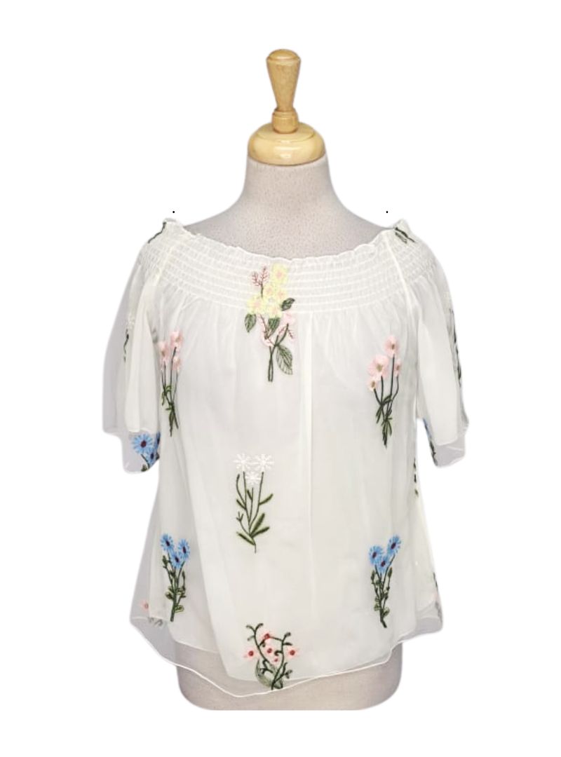 Qed London Ladies Embroidered Blouse - White/Pink/Yellow/Green