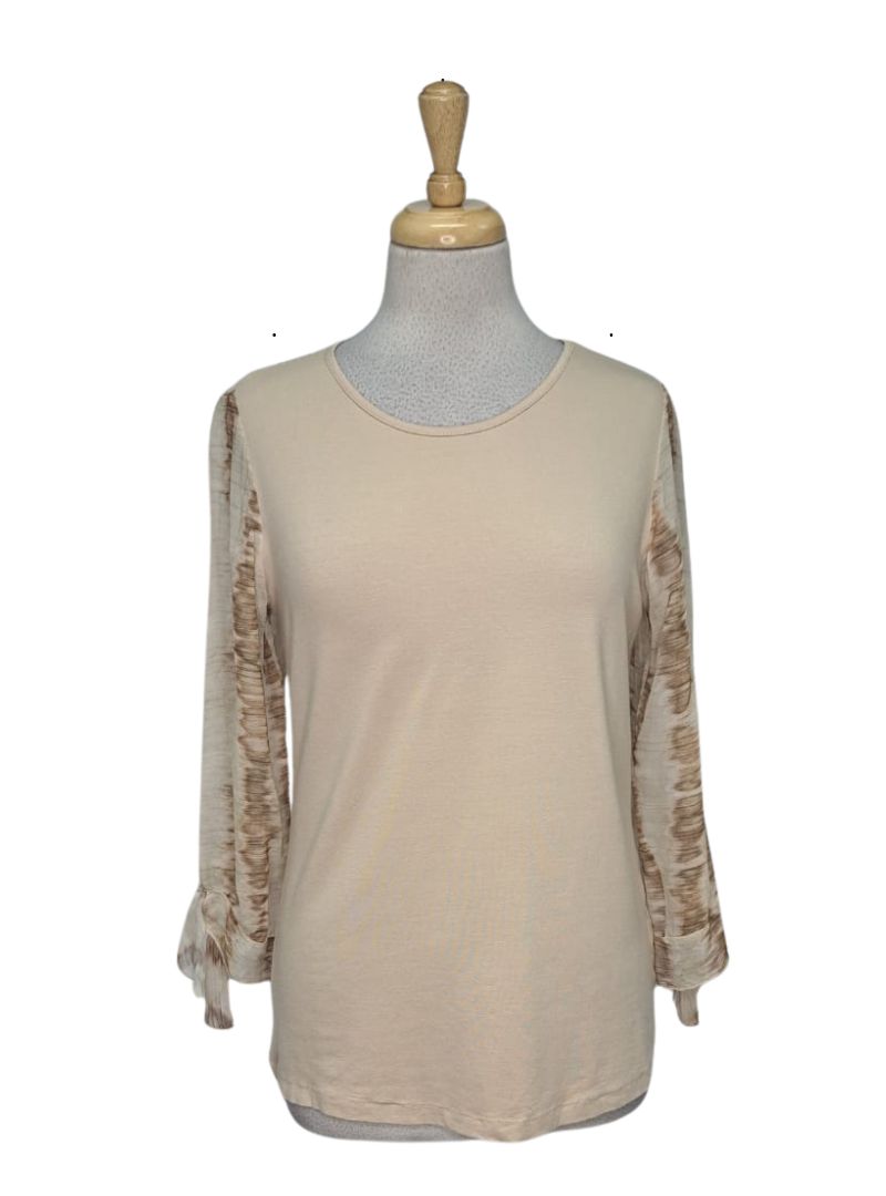 Solene Ladies Long Sleeve Detailed Top - Beige/Brown