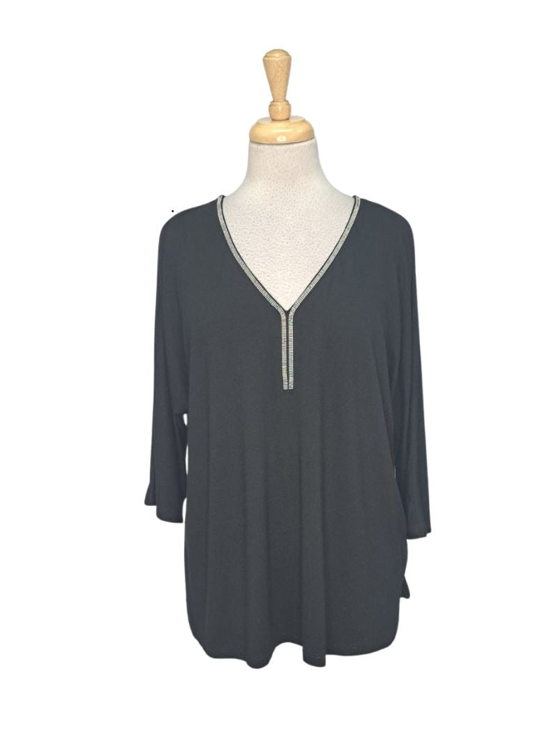 Solene Ladies V Neck Sequins Detail Blouse - Black/Silver