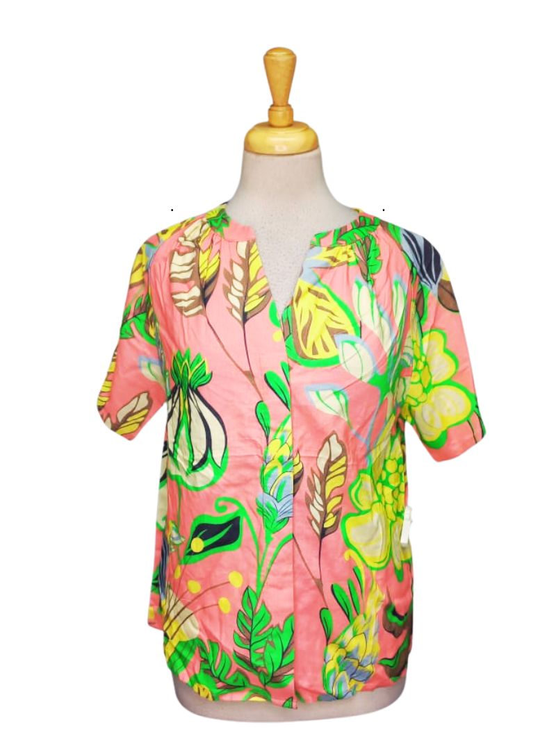 Thom Ladies Printed Detail Blouse - Pink/Brown/Yellow/Green