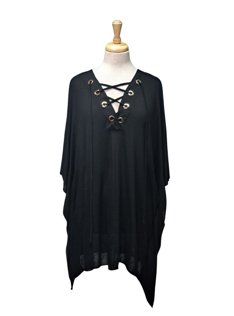 Bpc Selection Ladies Front Lace Up Detail Top - Black/Gold