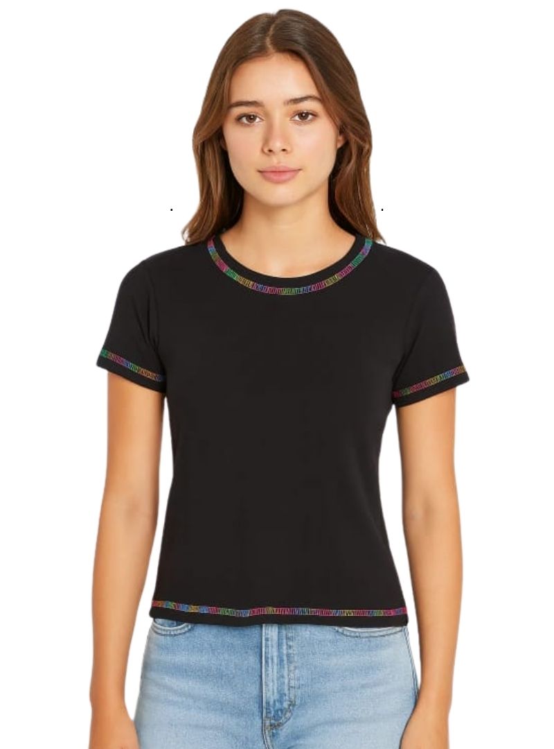 Forever 21 Ladies Basic Tee - Black/Pink/Green