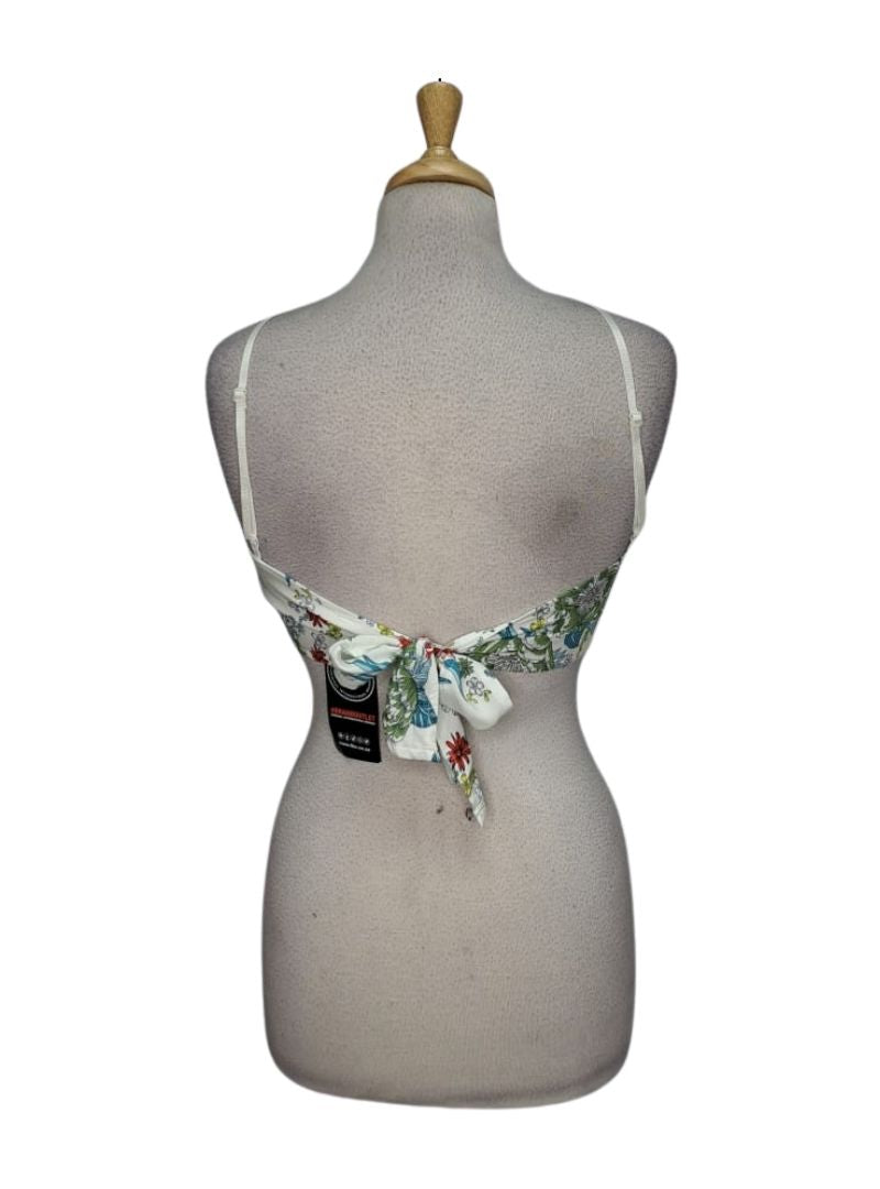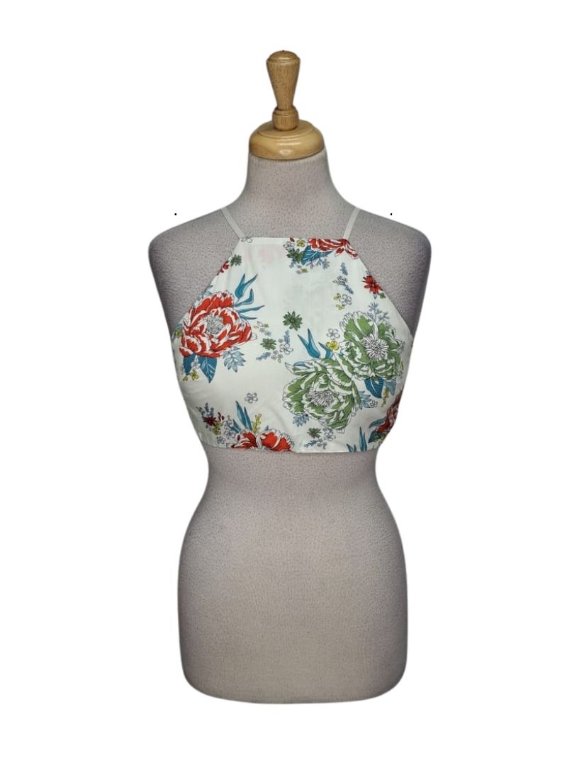 Inside Ladies Detailed Back Tie Crop Top - White/Green/Red