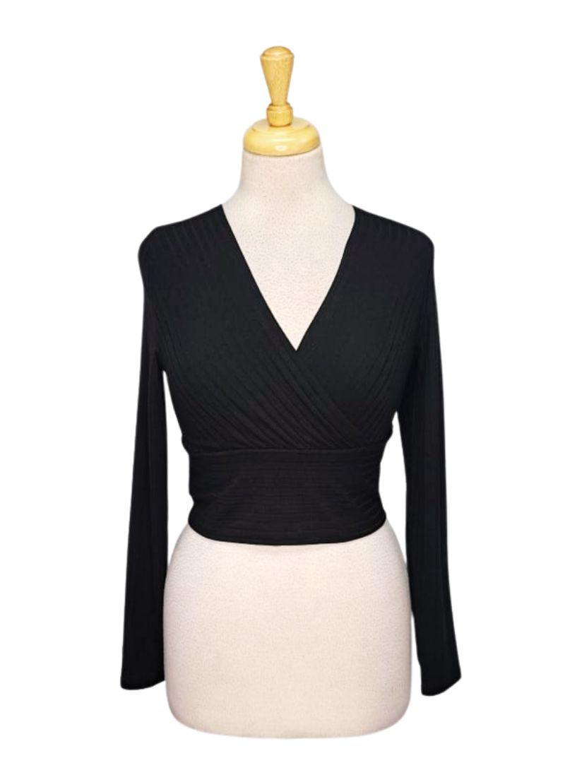 Lascana Ladies V Neck Sleeve Cropped Top - Black