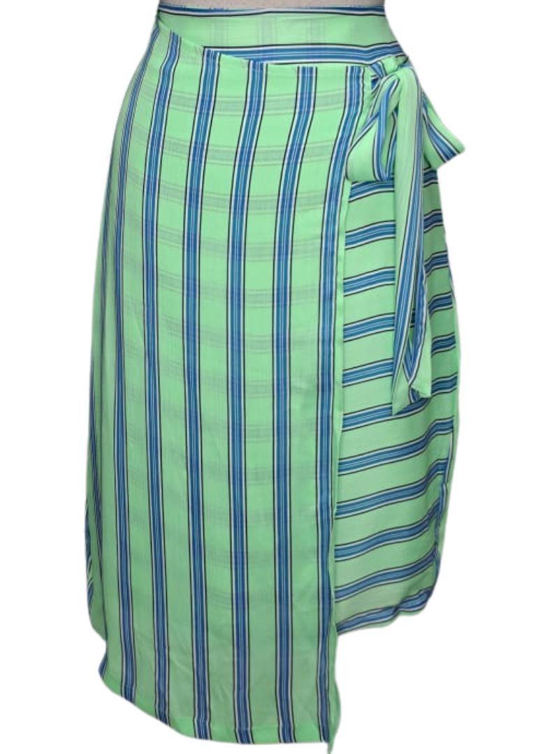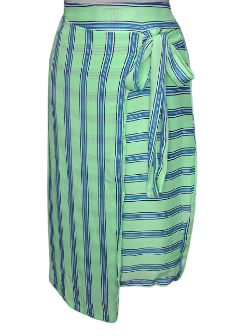 Inside Ladies Striped Rap Tie Detail Skirt - Green/Blue/White