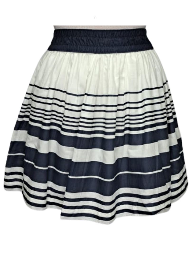 Dare to make a statement with this bold navy and white striped skirt. Sharp lines and classic contrast create an effortlessly chic silhouette that commands attention. Perfect for those who refuse to blend in, this piece transitions seamlessly from office to evening, proving that timeless style never goes out of fashion. Stripes that speak volumes.