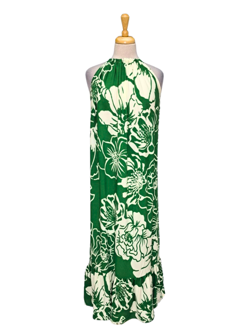 Olivy Ladies Hineck Halter Ruffle Maxi Dress - Green
