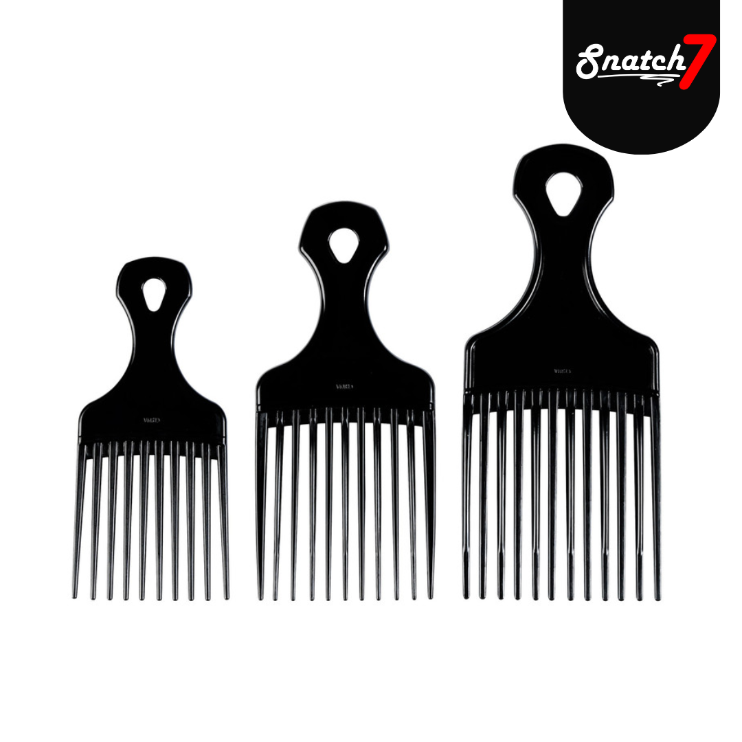 Untangle your crown with the Forsta Plastic Hair Pik—the ultimate weapon for managing afro textures. This bold three-size set gives you precision control, whether you're sculpting waves, defining curls, or creating intricate patterns. Lightweight plastic construction won't snag or break delicate strands, while the ergonomic handles keep your grip steady through every stroke. Black finish, maximum impact. Own your texture.