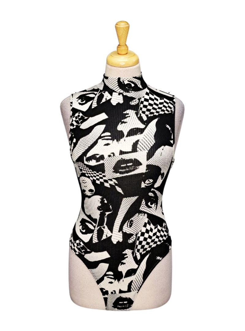 Forever 21 Ladies Printed Bodysuit - Black/White